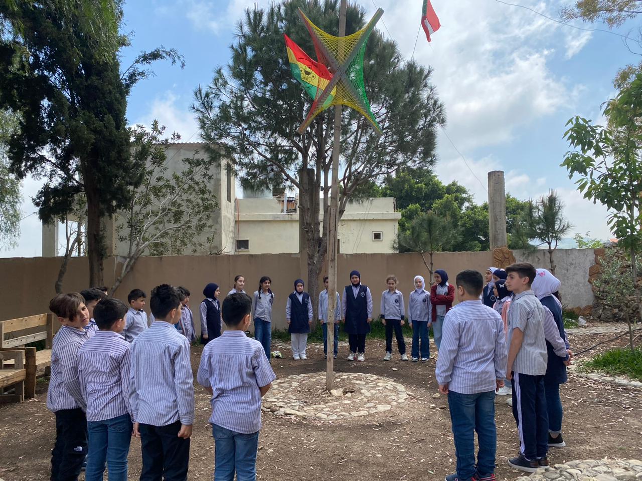 فوج ثانوية شمران اقام جلسة كشفية للصف الرابع “أ” والصف الخامس فرنسي حول مراسم رفع وإنزال العلمين اللبناني و الكشفي.