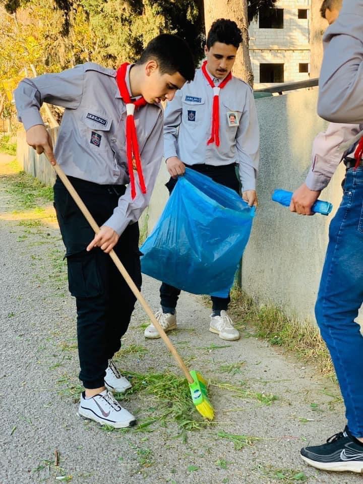 وحدتا الدفاع المدني والجوالة في فوج سحمر قامتا بتنظيف المقبرة استقبالًا للعيد
