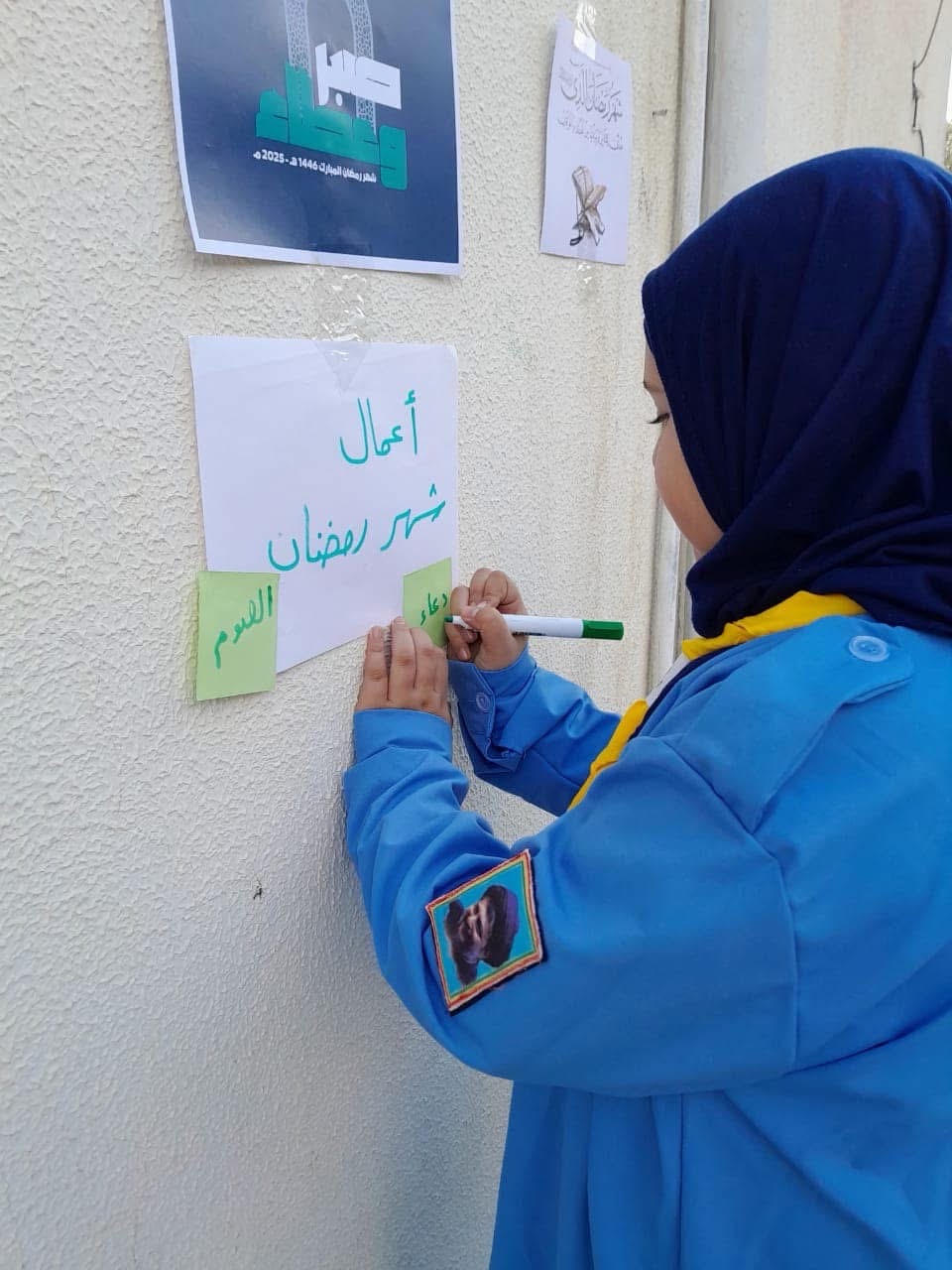 أقامت باقة الزهرات في جمعية كشافة الرسالة الإسلامية -مفوضية الجنوب -المنطقة الثانية -فوج الإمام المهدي عج- الرابع- جبشيت نشاطًا كشفيًّا بمناسبة حلول شهر رمضان المبارك،تخللت النشاط قراءة سورة الفاتحة و وعد الزهرات، وتنفيذ البرنامج الرمضاني للأسبوع الأول تحت شعار “مغامرات الفراشات الرمضانية” و الذي يتضمّن حلقة تلاوة قرآنية من سورة المطففين وتفسيرها، وتطبيق كيفية الوضوء و فقرة ألعاب تنافسية للتعرّف على أعمال الشهر الفضيل، وتخلّل النشاط قصة للتعرّف على عمّ النبي(ص) أبو طالب، واختتم بفقرة صناعة بطاقات تهنئة رمضانية وأشغال يدوية من وحي المناسبة.