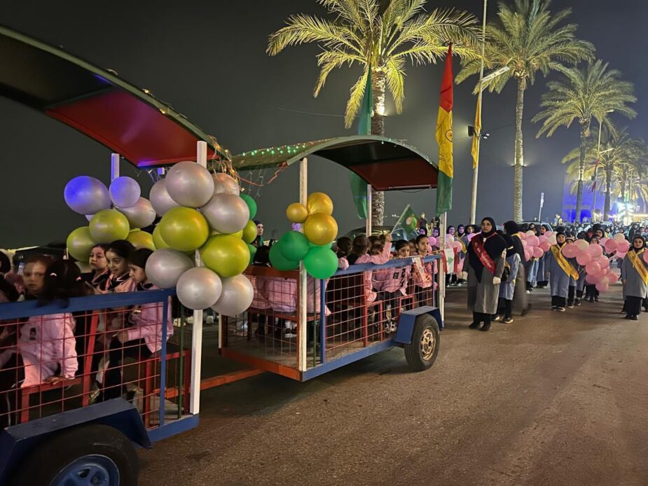 انطلقت المسيرة من أمام مركز الفوج لتعبر فوق ركام الحقد الص/هيونيّ بمشاركة المئات من عناصر الفوج في فرقهم النموذجية، حيث لبّوا النّداء ليدخلو الفرح إلى قلوب أهالي مدينتهم و يجددوا العهد و الوعد لدماء الشهـ ـداء بأن كشّافة الرّسالة الإسلامية هي خط الخط و أمل الأمل.