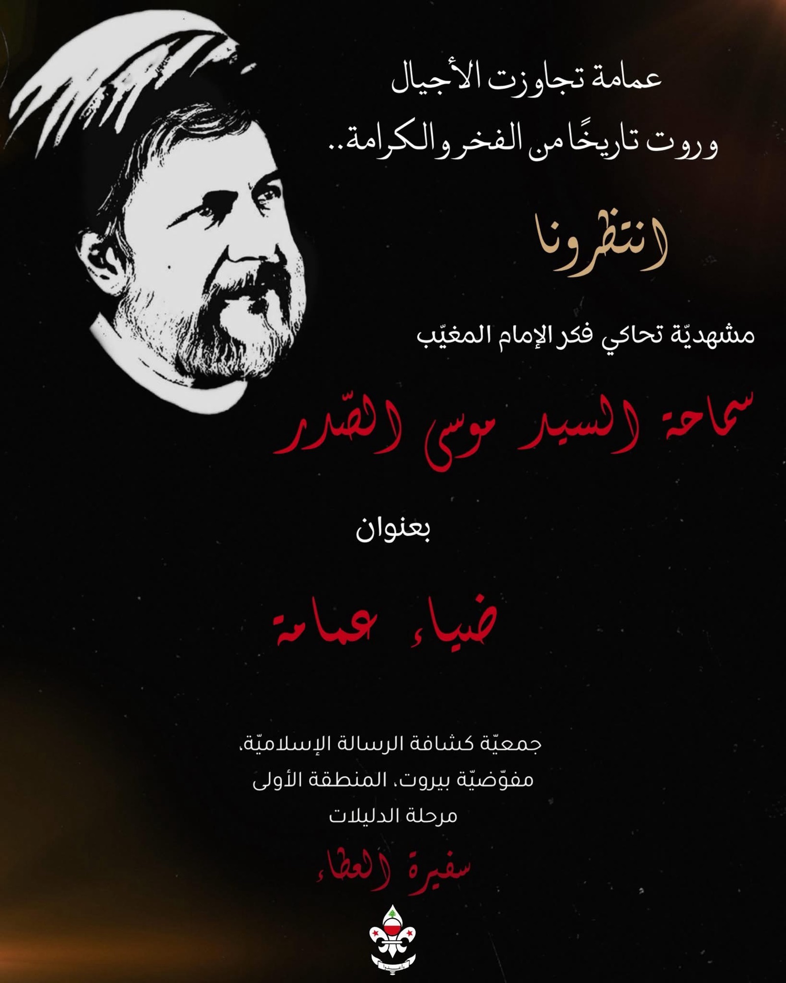 انتظرونا في مشهديّة تحاكي فكر الامام المغيّب لمرحلة الدليلات في مفوضية بيروت،المنطقة الأولى.