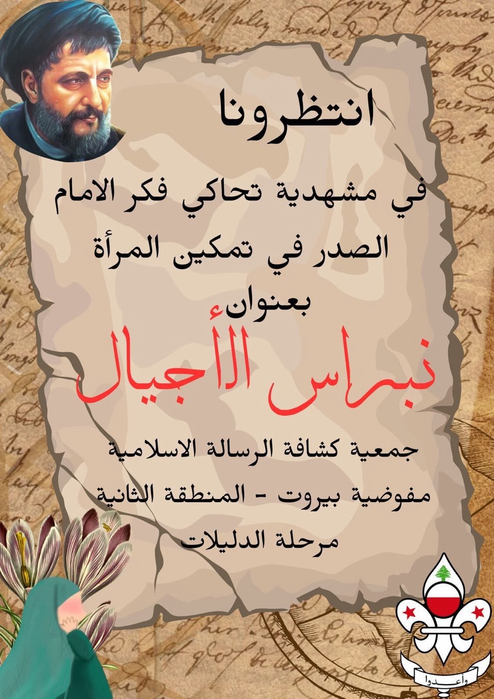 مشهديّة تحاكي فكر الامام القائد المغيّب المؤسس السيد موسى الصدر (أعاده الله) في مفوضية بيروت،المنطقة الثانية،مرحلة الدليلات،في تمكين المرأة بعنوان “نبراس الأجيال”.