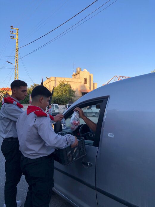 نشاط لعشيرة الدليلات والجوالة فوج ابي ذر الغفاري (رض)_ شقرا تنفيذًا للمطالب العاشورائيّة لمرحلتي الجوالة والدّليلات ، فوج أبي ذر الغفاري (رض)_شقراء ،المنطقة السابعة في مفوضية جبل عامل ، أقامت عشيرة الدّليلة المرحومة زهراء ذيب بالتعاون مع عشيرة الجوالة مضيفًا صحيًّا على حبّ الإمام الحسين (ع) ، وتمّ توزيع الحصص الغذائيّة الصّحيّة على المارّة.
