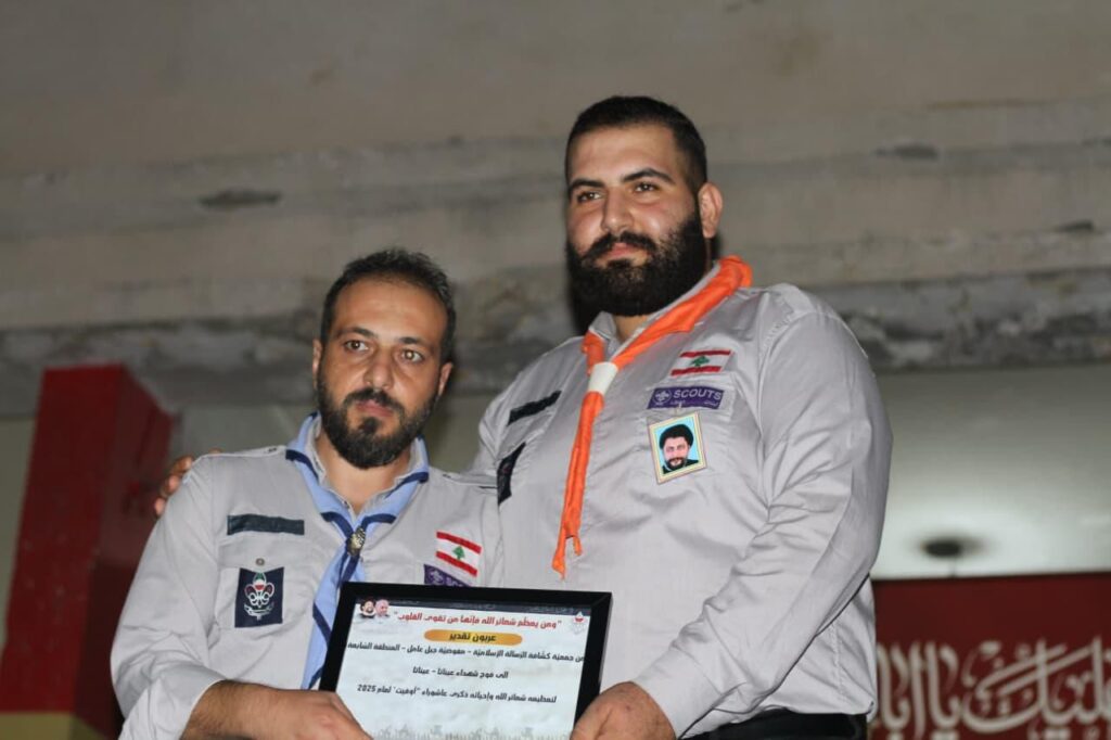 المنطقة السابعة في كشافة الرسالة الاسلامية تمنح وسام (الفوج المعاصر) للقادة والأفرادنظّمت جمعية كشافة الرسالة الإسلامية – مفوضية جبل عامل – المنطقة السابعة وبحضور النائب اشرف بيضون ومفوض جبل عامل القائد قاسم حيدر ومفوضو المراحل في المفوضية والمسؤول التنظيمي للمنطقة السابعة الأخ علي خليل واعضاء المنطقة ولجنة شعبة شقرا واعضاء لجان الشعب الحركية والمنطقة الكشفية وقيادات الافواج في المنطقة وفعاليات بلدية واختيارية وتربوية واجتماعية وأهالي الكشافين وذلك في احتفال منح الأوسمة للقادة والأفراد الذين نفذوا مطالب عاشوارائية بعد تقديم الحفل من القائدة سماء بلال بركات تلاوة كريمة من القران الكريم من القائد حسين اسماعيل والنشيدين اللبناني وجمعية كشافة الرسالة الأسلامية وقدمت فرقة المرشدات- فوج شقرا انشوده بعنوان نداء الحسين .ويليه عمل مسرحي عن الوسام الكشفي وكان شرح مفصل عن الوسام (الفوج المعاصر) الذي منح للأفراد والقادة من قبل القائد سماء بركاتوكانت كلمة مفوض تنمية القيادات في مفوضية جبل عامل للقائد محمد علي جاء فيها . يعبّر الامام القائد السيد موسى الصدر عن عمق العلاقة بين شهداء حركة امل وشهداء الملحمة التاريخية الخالدة , كربلاء اذا يُحمّل الحركة ارث الثورة الحسينية قائلا أمل ارثها في ثورتك يا وارث الانبياء ويصف شهداء الحركة بأنهم الفوج المعاصر للإمام الحسين ع.. من هنا كانت لكشافة الرسالة الاسلامية مفوضية جبل عامل انطلاقة جديدة خلال عاشوراء هذا العام انطلاقة من بين عظيم التضحيات الأخيرة انطلاقة من تحت ركام القرى والبلدات انطلاقة متجذرة بأرض الطف ومتعلقة وبالارث العظيم حيث أعدت لجان المراحل واللجان الفنية المختصة بالبرامج والمناهج في مفوضية جبل عامل مجموعة من المطالب العاشورائية لجميع المراحل الكشفية فانكب القادة والأفراد في مجمل المفوضية وعلى امتداد شهر محرم الحرام على تنفيذ هذه المطالب والعمل بمضمونها سعيا لتعميق الارتباط الوثيق بالامام الحسين عليه السلام وتعاليمه السماوية وتحصيلا ل “وسام الفوج المعاصروقد تنوعت أهداف ومؤشرات هذه المطالب بين ما هو معرفي يهدف الى ثقل وتزويد الافراد والقادة بمجموع وازن من المعارف والمدارك العاشورائية والحركية والمجتمعية وبين ما هو سلوكي يهدف الى ارشاد وضبط سلوك الافراد على بوصلة الاخلاق الحميدة والنهج الحسيني القويم اضافة الى اكساب الافراد والقادة بعض المهارات الفنية والعملية كالخطابة والتمثيل والآداء والاشغال اليديوية وصنع المجسمات العاشورائية وغيرها الكثير الكثير ورمنا من وراء هذه البرامج نيل رضا الرحمان اولا … والمضي بقادة وعناصر كشافة الرسالة الاسلامية في مفوضيتنا لتثبيت هويتهم كفوجَ معاصرَ للإمامِ الحسين (ع) في ميادينِ نشرِ الوعي والثقافةِ في المجتمع، وفي ميادين مقاومةِ ومقارعة الشر المطلق اسرائيلُ لنكونَ في طليعةِ المدافعينَ عن الارضِ والوطن وحماة سلمه الأهلي وبناة قواعد تعايش ابنائه على اختلاف مذاهبهم وطوائفهم انسجاما مع نهج امامنا المؤسس واضاف وبالعودة للامامُ الصدر ونظرته نحو الكشاف كمدخل لتكوينِ مجتمعٍ ينبض بالحياة ، يتحرّكُ ويتصدّى للدّفاع عندما تدعو الحاجة ، يتفاعل فيما بينه على الخير .. ينبذ التطرف والتعصب فمن الأشبالِ والزّهرات يبزغ فجر الغدِ المشرقِ الواعد بمستقبلٍ افضل..فنعلمهم في عاشوراء محبّةَ الوطن، والإنضباطَ والعملَ الجماعيّ، نعلّمُهم معنى روحَ الأخوّةِ واحترامَ الآخرينوللكشافةُ والمرشدات.. عقدنا فيما بينهم مفاهيم الرحمة في عاشوراء ..وهم الذين جعلوا الخير عنواناً ومنطلقا لأنشطتهم المتنوعة والهادفة فوعدُهم الكشّفي يصبُّ في خدمةِ الله في المرتبةِ الأولى, ثمّ في الذوبان في الوطن, فمساعدة الإنسان في كل حين, فيعملون بقانون الكشافولمرحلتي الجوّالةِ والدّليلات درة تاج المراحل الكشفية والشباب , نبض الكشاف الزاخر بالعطاء خزان القادة ومصنعهم.. فكان لهم الدور الابرز في الخدم