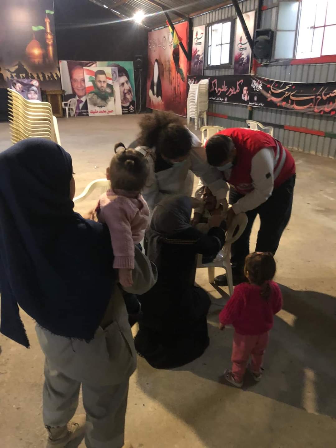 من مشاركة فرقتي الدفاع المدني و المسعفات في فوج الإمام الحسن المجتبى (ع) بحملة التلقيح المجانية للأطفال مع الصليب الأحمر بقاعة شهداء العمروسية