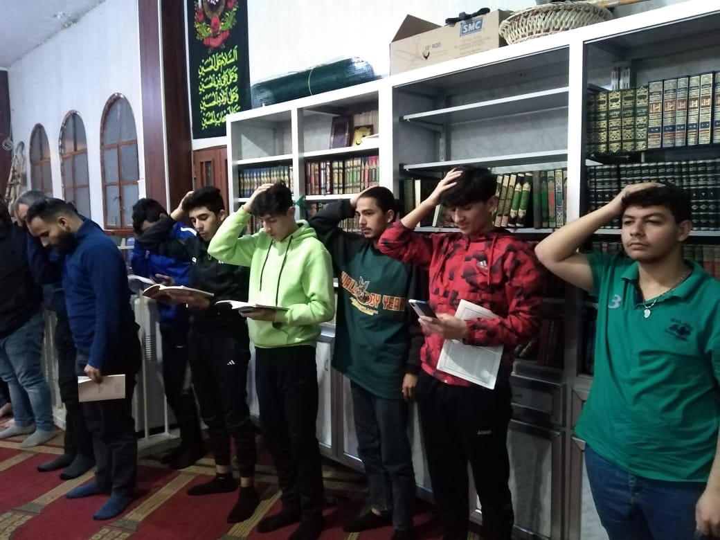 تابعت عشيرة الجوالة في كشافة الرسالة الإسلامية- مفوضية بيروت- المنطقة السادسة- فوج الشهيد مصطفى شمران قراءة دعاء الافتتاح في المسجد.