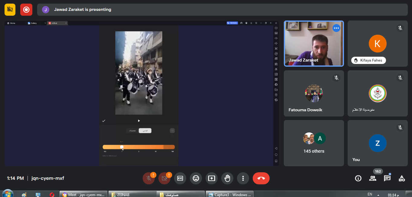نظمت جمعية كشافة الرسالة الإسلامية مفوضية الإعلام دورة تدريبية تحت عنوان ” مبادئ التصميم والمونتاج على الهاتف المحمول” المستوى الأول عبر تطبيق google meet،وذلك بحضور المفوض العام وأعضاء المفوضية العامة لجنة مفوضية الإعلام ومفوضي الإعلام في المفوضيات وعدد كبير من القادة والقائدات المشاركين.