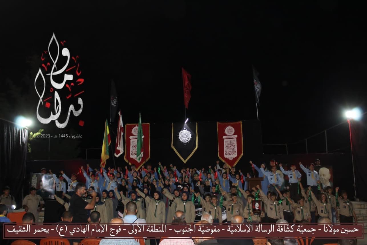 مشاهد مصورة من مسيرة الولاء التي أقامتها حركة أمل وجمعيّة كشّافة الرسالة الإسلاميّة – مفوضيّة الجنوب – المنطقة الأولى – فوج الإمام الهادي (ع) شعبة يحمر الشقيف في الرابع من محرم.