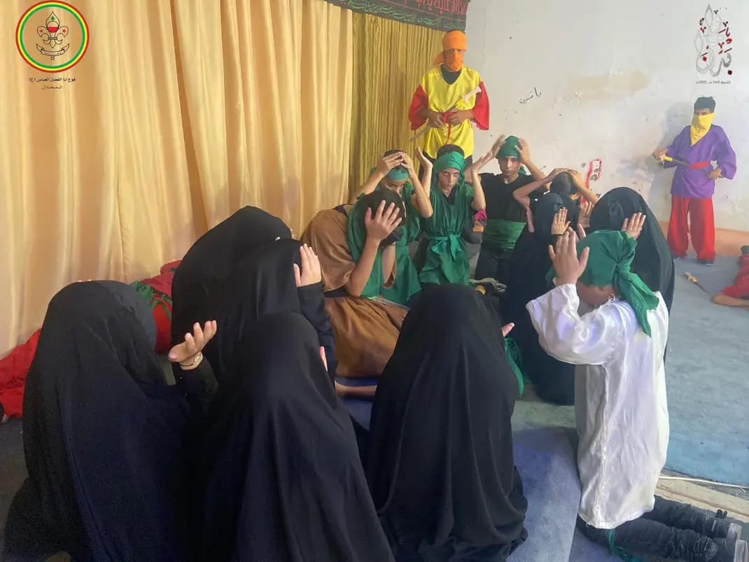 بمناسبة ذكرى عاشوراء، أقام فوج أبا فضل العباس في المنطقة الثالثة في مفوضية جبل عامل اليوم الخامس من مجالس فتية سيد الشهداء (ع) وفتيات العقيلة (ع)، حيث تخلل اللقاء عمل فني، مشهدية عاشورائية ،لطمية ،قرآن،تدريب للمسيرة