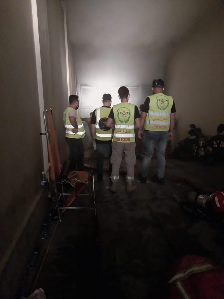الدفاع المدني يشارك بأعمال الإغاثة في حريق معمل على طريق المطار