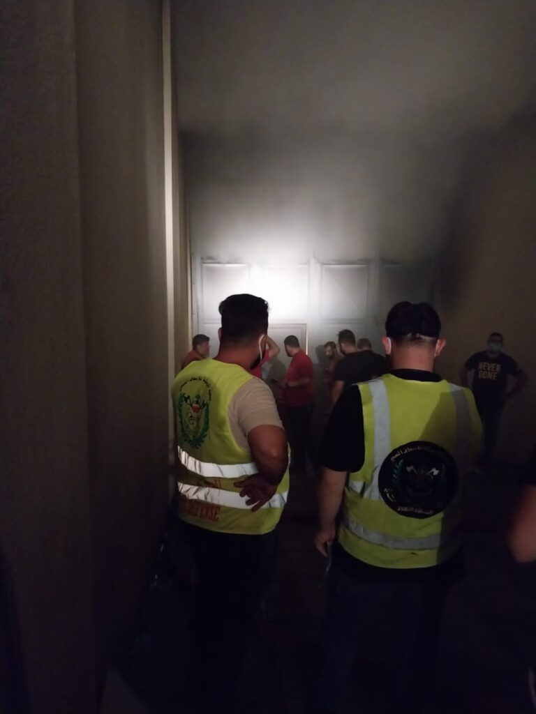 قامت فرق الدفاع المدني في كشافة الرسالة الإسلامية- مفوضية بيروت بتأمين السلامة العامة لرجال الإطفاء والمواطنين في حريق معمل القماش خلف مطعم الساحة